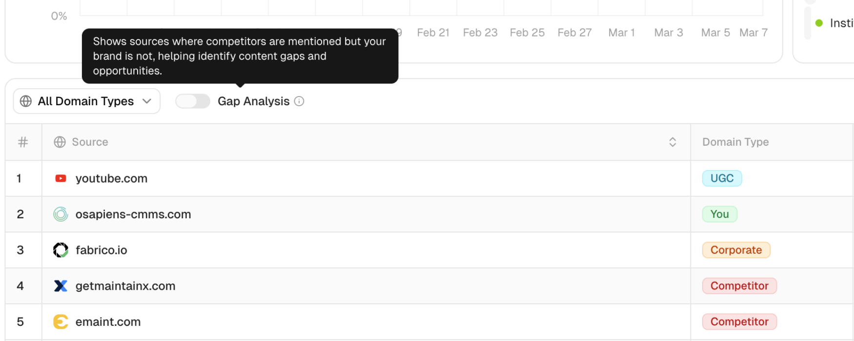 Citation gap analysis in Peec AI