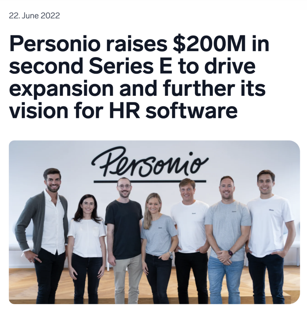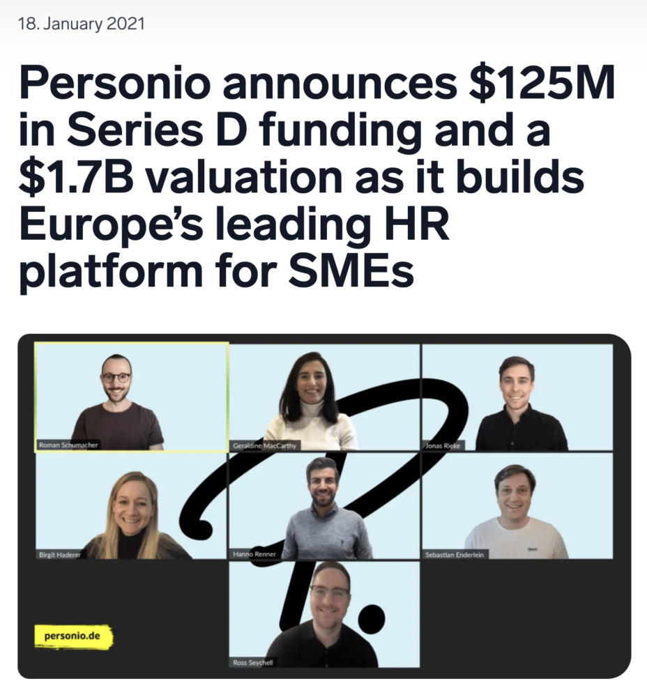- 2021: Personio hits unicorn status with a $125M Series D, valuing the company at $1.7B.