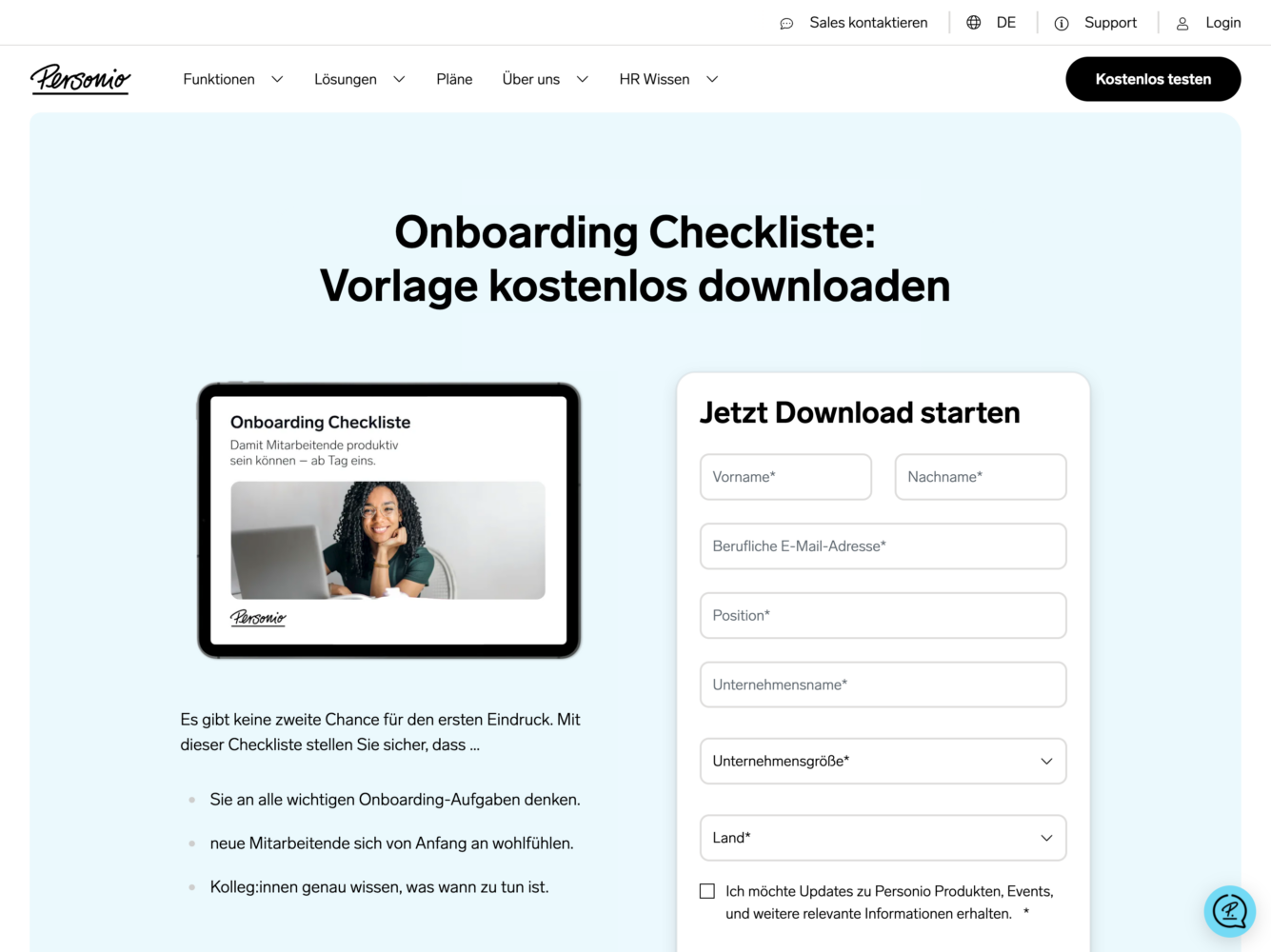 Personio doesn’t play the “fluffy whitepaper” game. Their lead magnets are practical tools that HR professionals can use immediately.