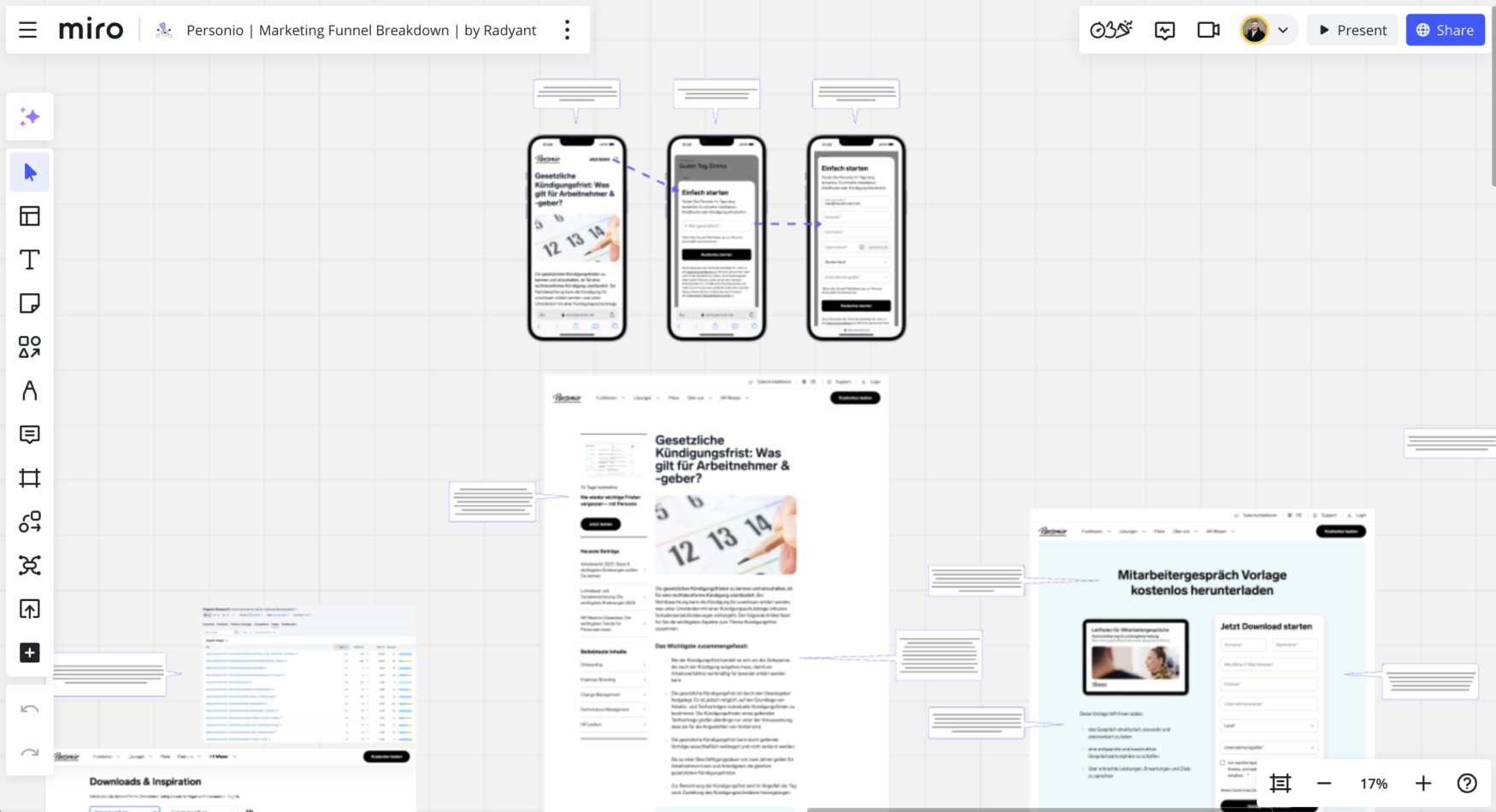 Interactive Miro Board with the full funnel breakdown of Personio (by Radyant)