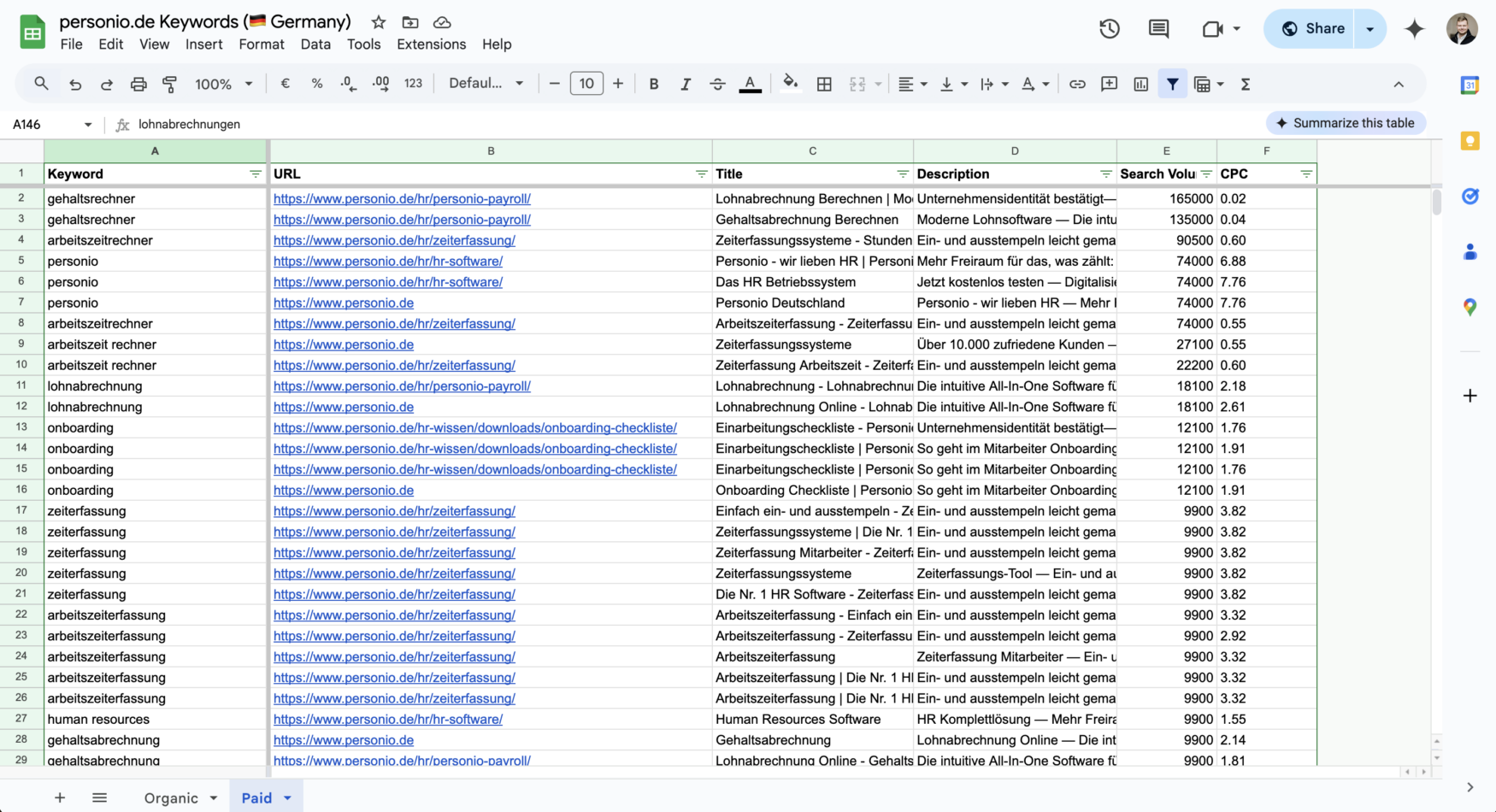 Find the full* organic search keyword database of Personio (in Germany) here (*limited to 30,000 keywords)