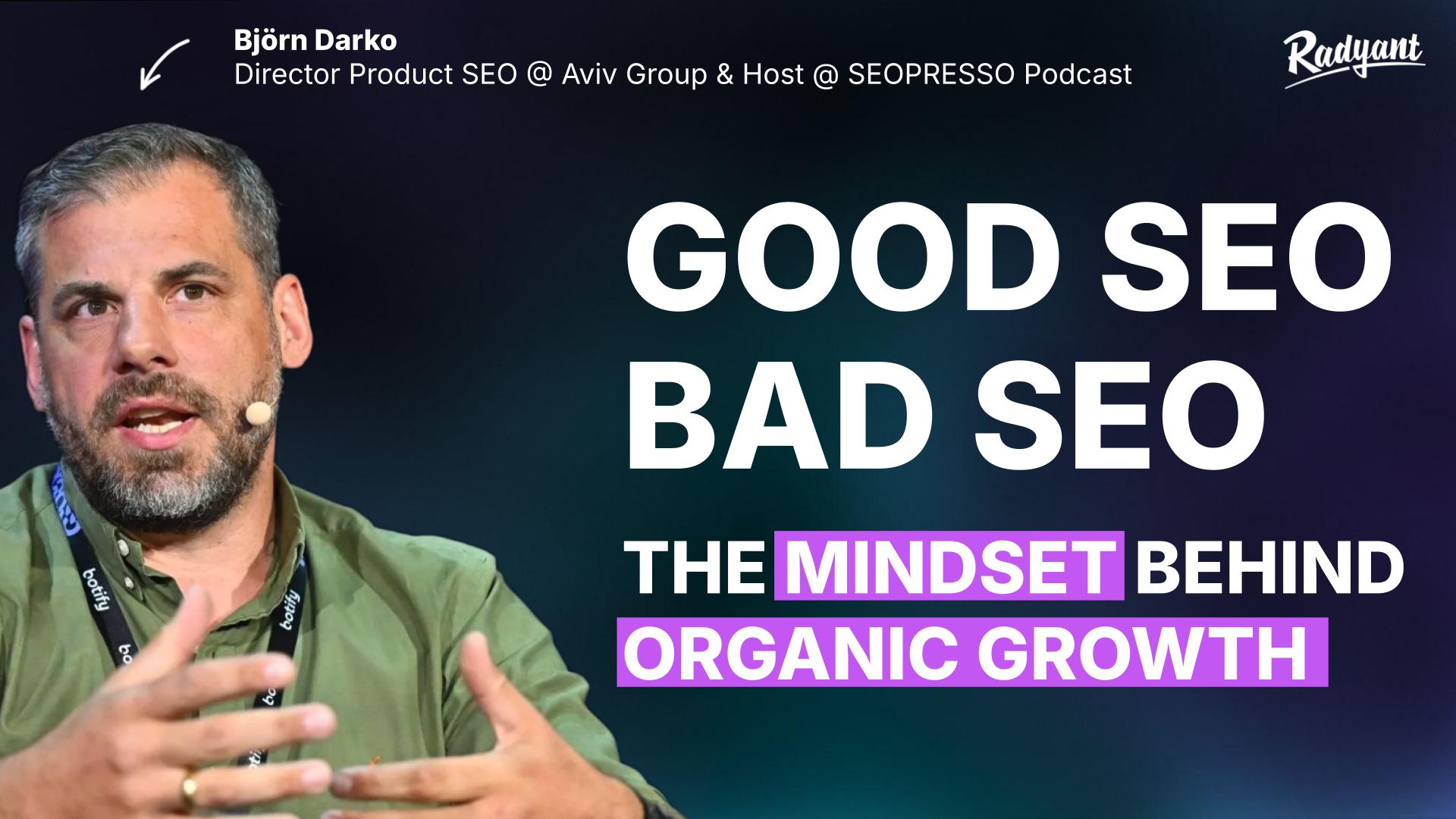 Good SEO/Bad SEO | Björn Darko, Director Product SEO @ Aviv GroupMy guest today is Björn Darko. He leads an Enterprise SEO org by day, and hosts one of the largest German SEO podcasts by night. At Aviv Group, Björn oversees a 30-person team building SEO infrastructure for some of the biggest real estate…